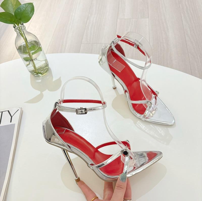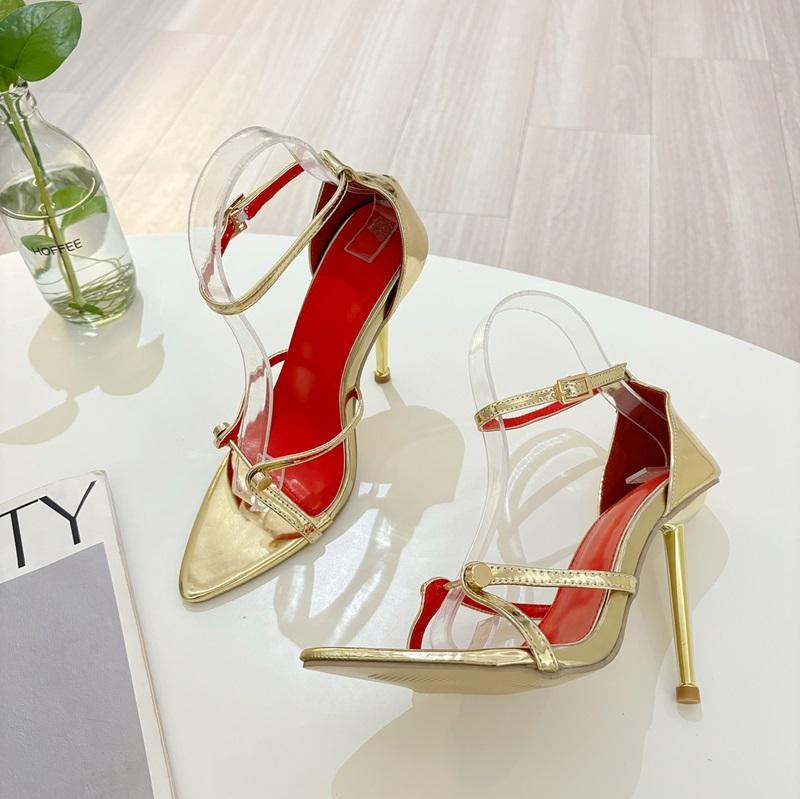Nouvelles Sandales à Talons Hauts Pointues et Ouvertes en Métal Argenté et Doré avec Boucle à Rivets, Tendance et Sexy 2025