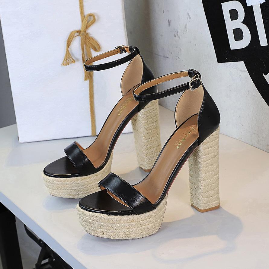 Nouvelles Sandales 2025 à Talons Hauts pour Femme, en Corde Tressée, à Plateforme et Semelle Épaisse, Chaussures Décontractées Sexy, Modèle Été avec Bride à Boucle