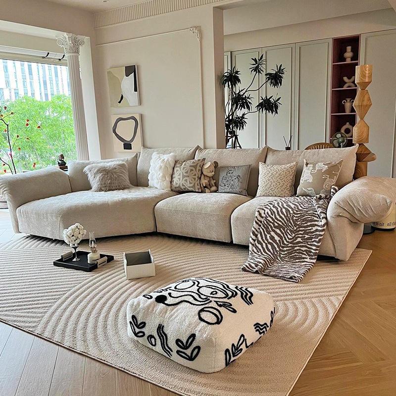 Nouveau Canapé Carré 2025 – Style Minimaliste Italien pour Salon, Tendance Internet, Couleur Crème Pétale, Rembourrage Éponge, Revêtement en Tissu