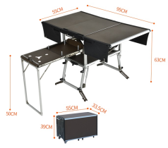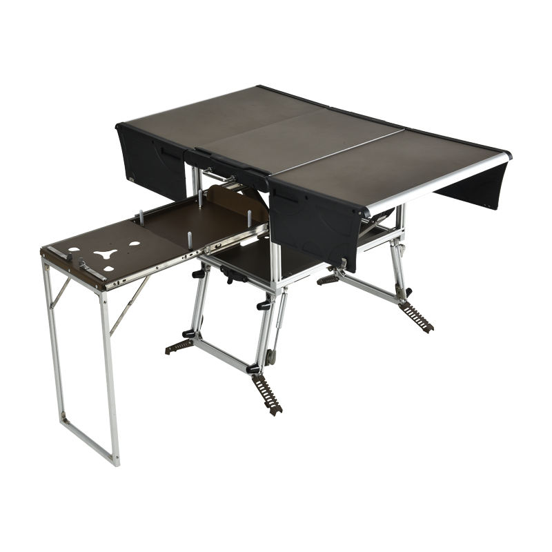 2025 nouveau Style Camping cuisine mobile Table de pique-nique pliante avec cuisinière à gaz et vaisselle ensemble d'ustensiles de cuisine