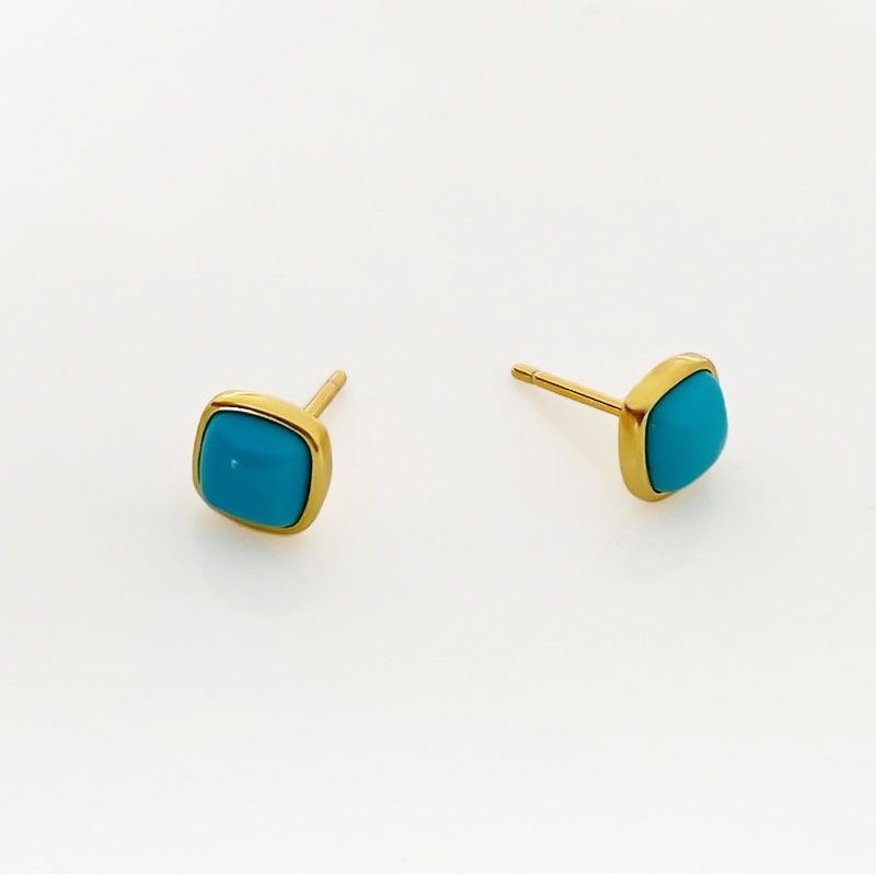 2025 New Style Turquoise Square Stud Earrings Classic Geometric Emerald Cut Diamond Good Price Daily Wear for Parties