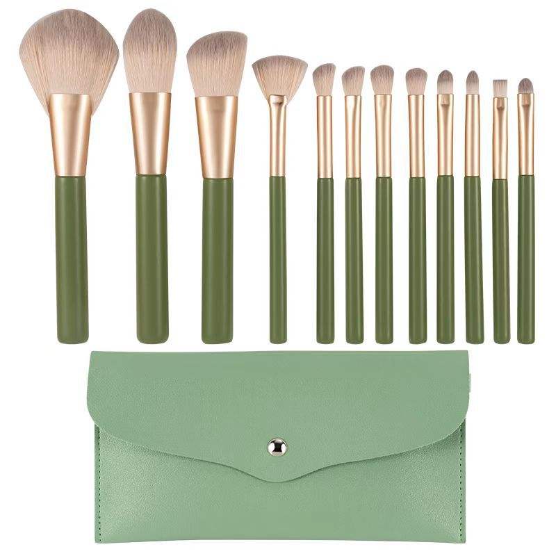 2025 nouveau Style de haute qualité en Fiber synthétique souple manche en bois pinceaux de maquillage Logo personnalisé 12 pièces ensemble de pinceaux cosmétiques avec sac