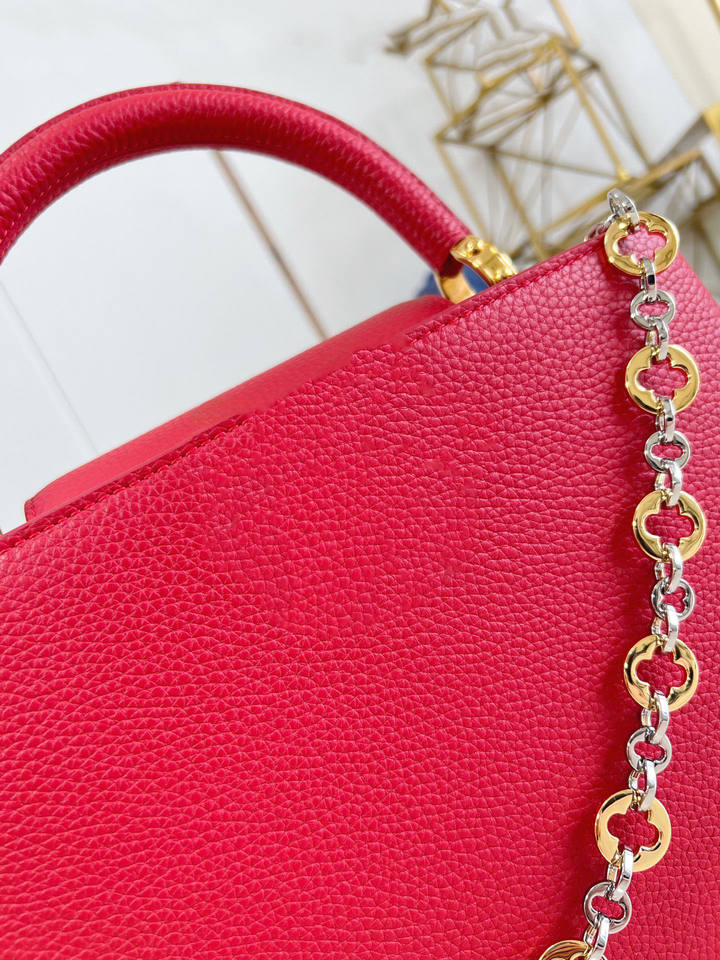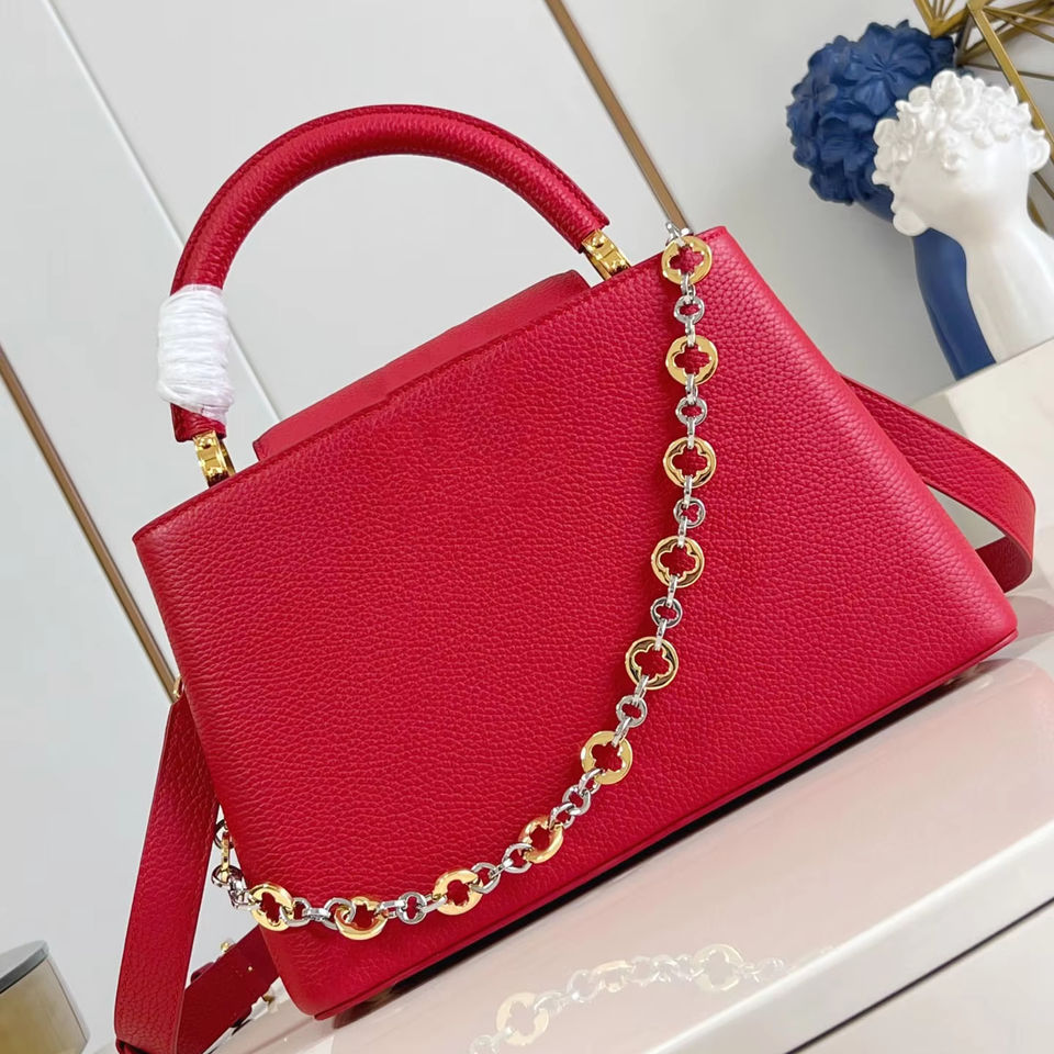 Sac à main chaîne en cuir texturé lychee, style 2025, couleur contrastée, rouge, sac bandoulière haut de gamme