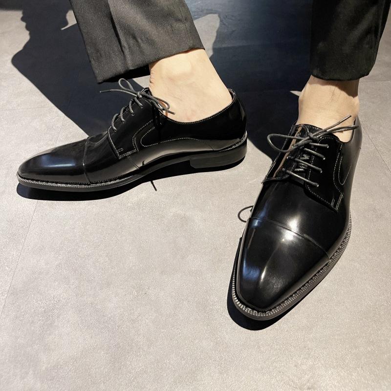 2025 New Style Men's Business Dress Shoes with Handmade Genuine Cow Leather Lace-Up Closure Wooden Sole for Spring Weddings