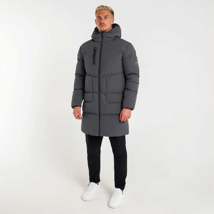 Veste d'hiver longue matelassée pour homme, nouveau style 2025, design personnalisé avec col à capuche et logo frontal, faible MOQ