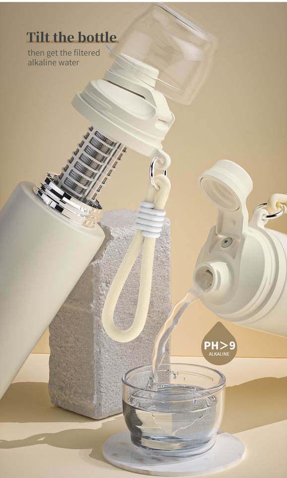 Nouveau Style 2025 Bouteille Filtrante Alcaline en Acier Inoxydable SS304 à Double Paroi pour Garder l'Eau Froide, Augmenter l'Énergie et Améliorer le pH