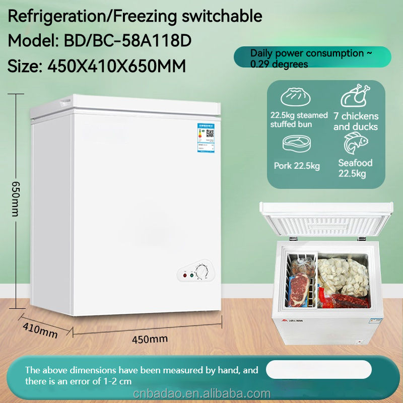 Nouveau modèle 2025 Congélateur coffre horizontal blanc 72L, alimentation automatique, dimensions d'emballage, prix usine, usage commercial, domestique et hôtelier