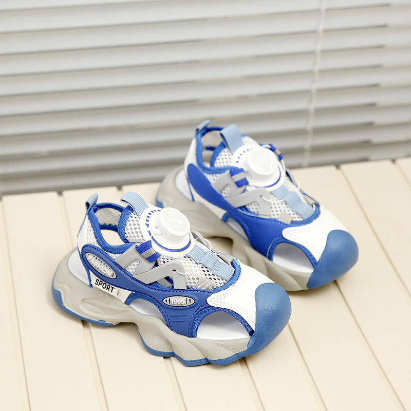 2025 New Summer Boys' Beach Sports Sandals Closed Toe Casual Shoes with Mesh Hollow Featuring Rubber PVC & PU Insole Materials