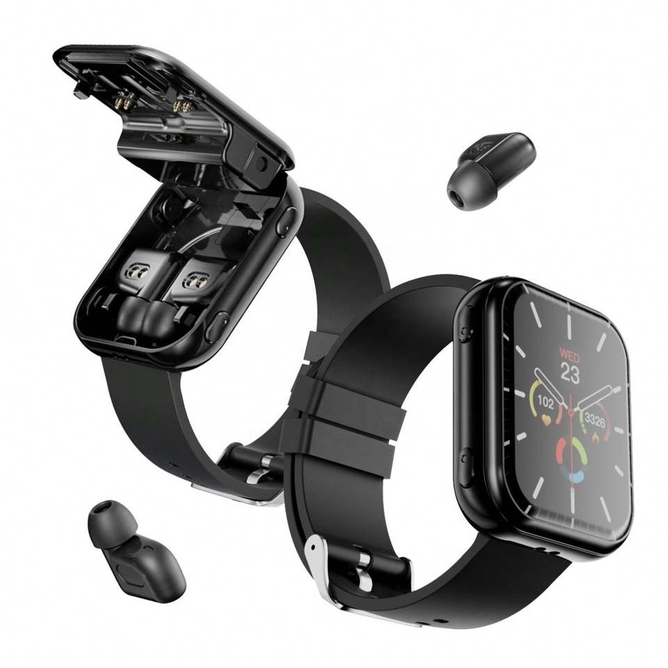 Nouvelle montre connectée T1 modèle 2025, écouteurs sans fil deux-en-un pour appels Bluetooth, fonctions de suivi d'activité, bracelet en gel de silice, étanche IP67