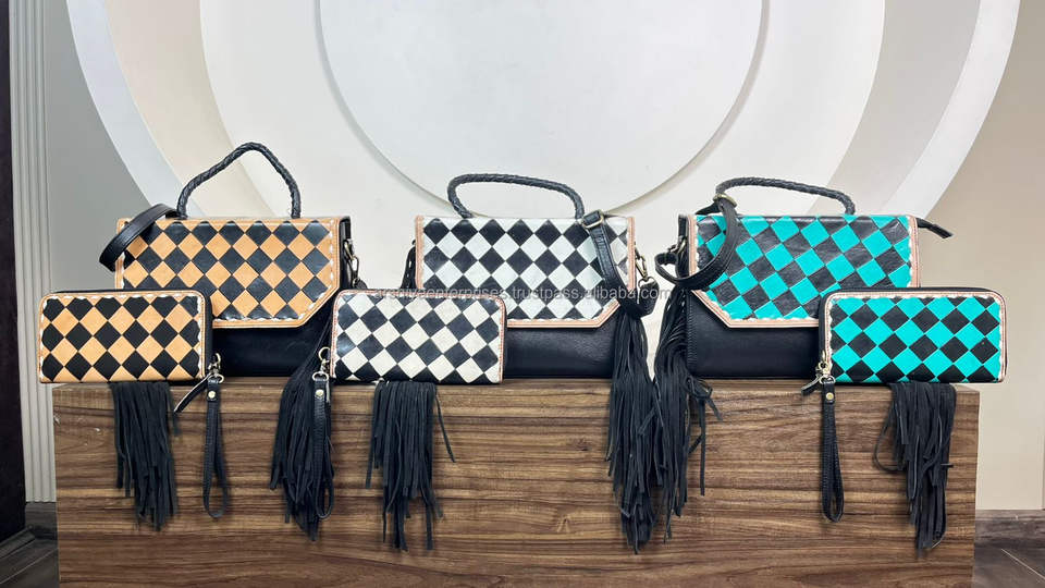 2025 nouveau à la mode haute capacité outillé à la main en cuir véritable sacs à main et bracelets portefeuilles motif à carreaux 2 pièces femmes Combo ensemble