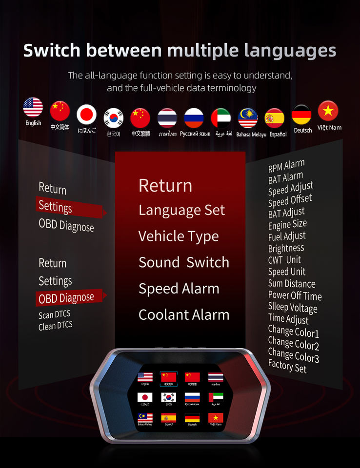 Surveillance de la vitesse, Eau température, Consommation de carburant, Alarme de tension, Moteur TR/MIN, Temps de conduite, GPS INTÉGRÉ, Distance de conduite