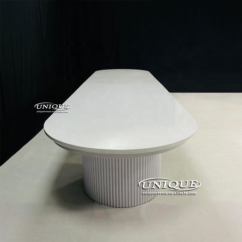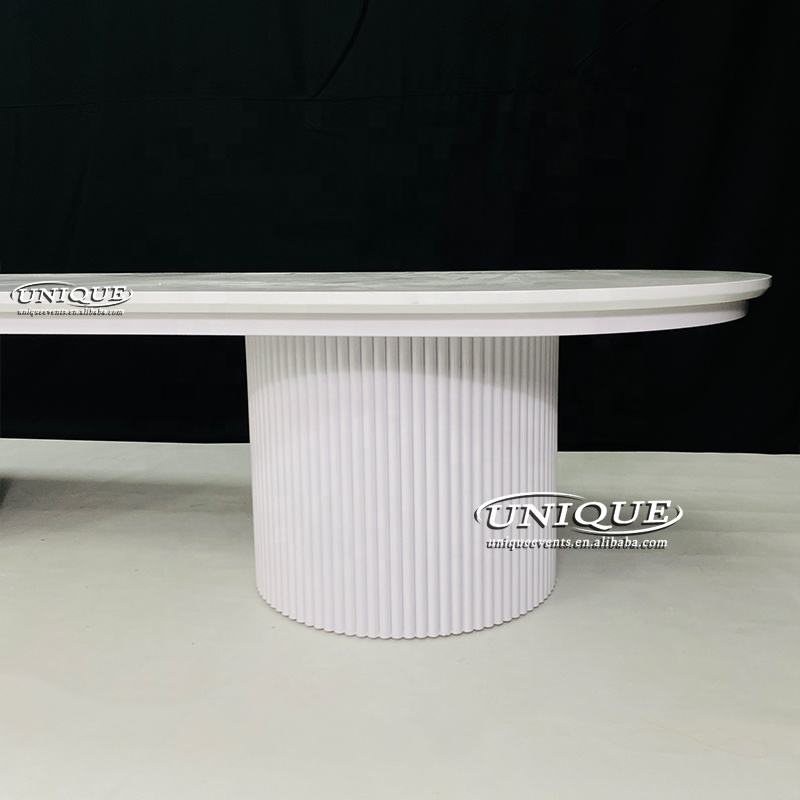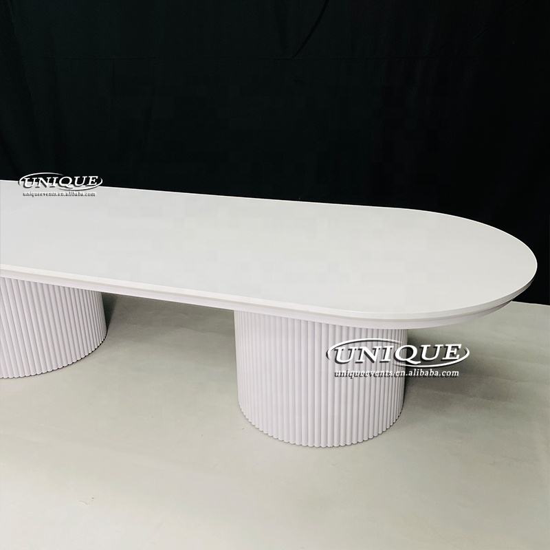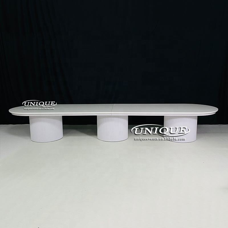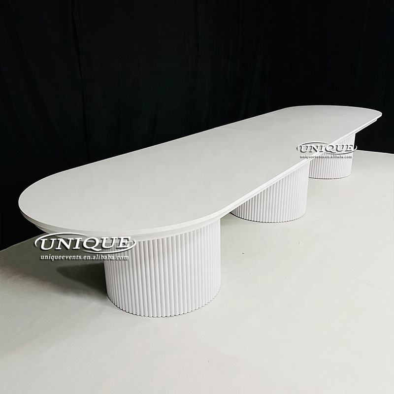 2025 nouvelle table à manger en métal blanc moderne forme ovale meubles de banquet de mariage pour 16 personnes salon utilisation extérieure pour les hôtels