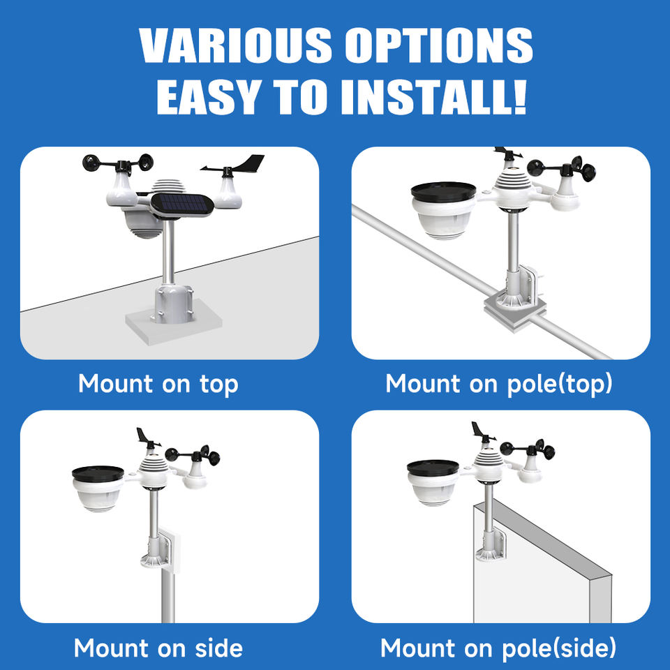 Fonction:Température, humidité, vent, direction du vent, précipitations, UV