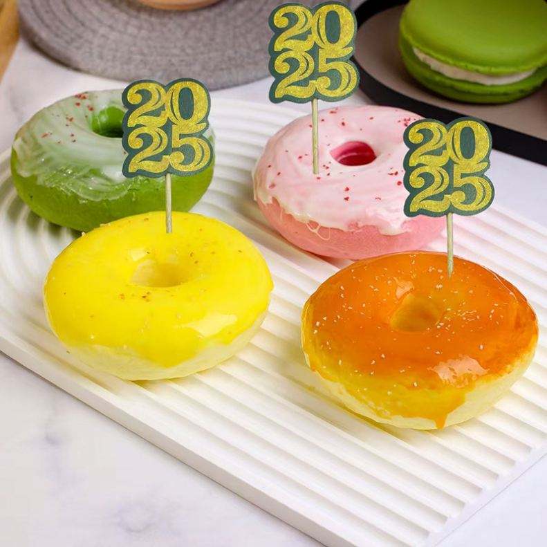 2025 New Year Diwali Party Mixed Color Paper Flower Shape Sucker Food Grade Degradable Graduation Dessert Cake Cocktail