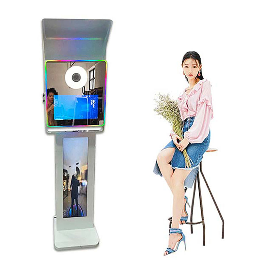 2025 plus récent pour Vogue 65 pouces ovale magique miroir Photo stand Kiosque Machine Compatible avec appareil photo pour les fêtes de mariage