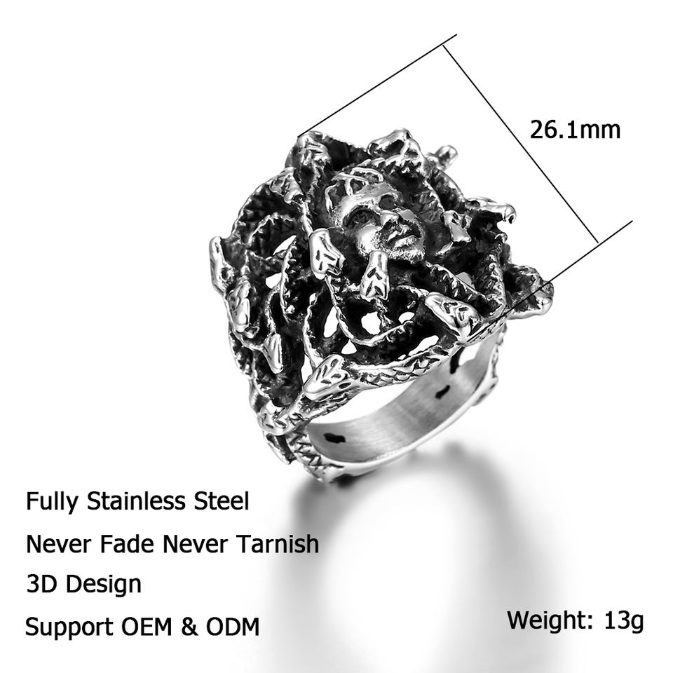 2025 Non Ternir Déclaration 3 D Maquette Designer Anneaux En Gros Vintage En Acier Inoxydable Méduse SnakeRings pour Hommes