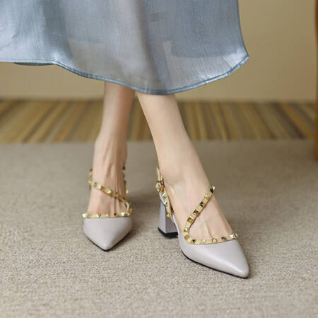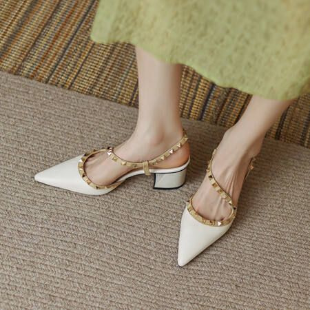 Sandales à talons plats confortables à bout pointu de 5 cm, style français, cloutées, pour femmes, été, talons hauts, 2025