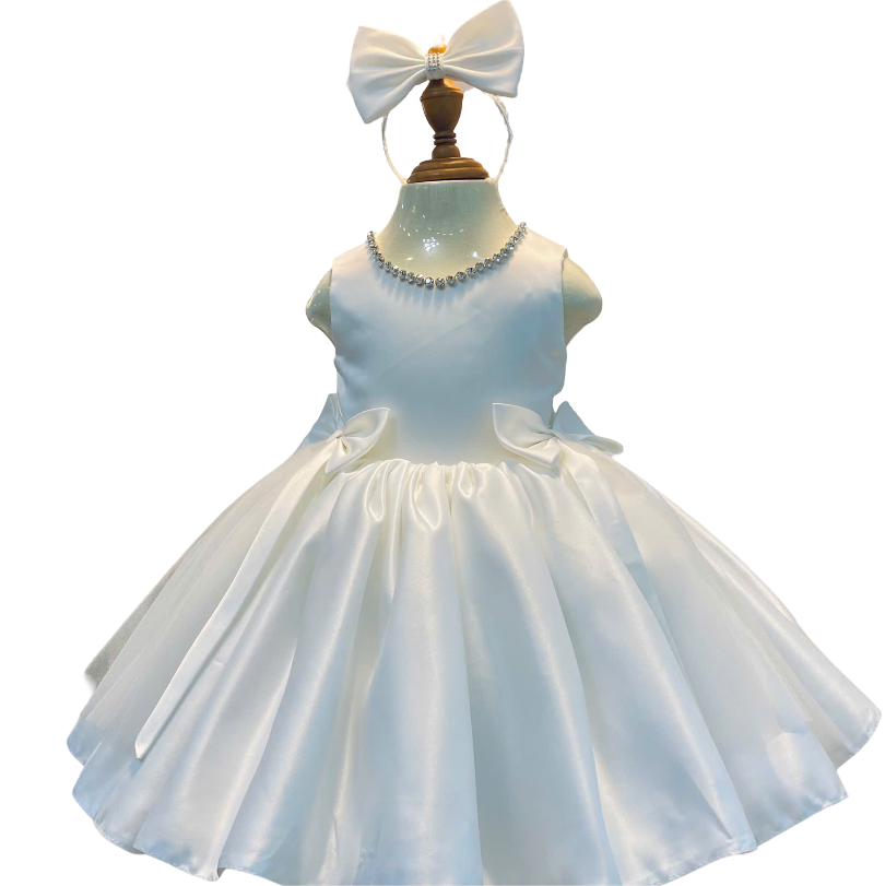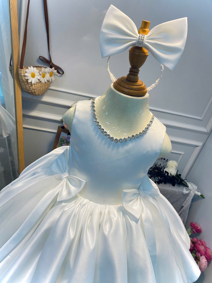 Soft Satin Bow Evening Dress for Girls, Beaded Halter Neck Design, Party Dress for Kids
