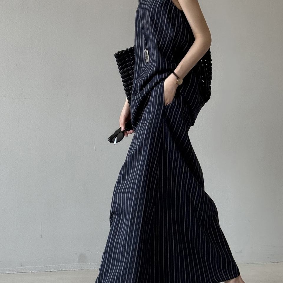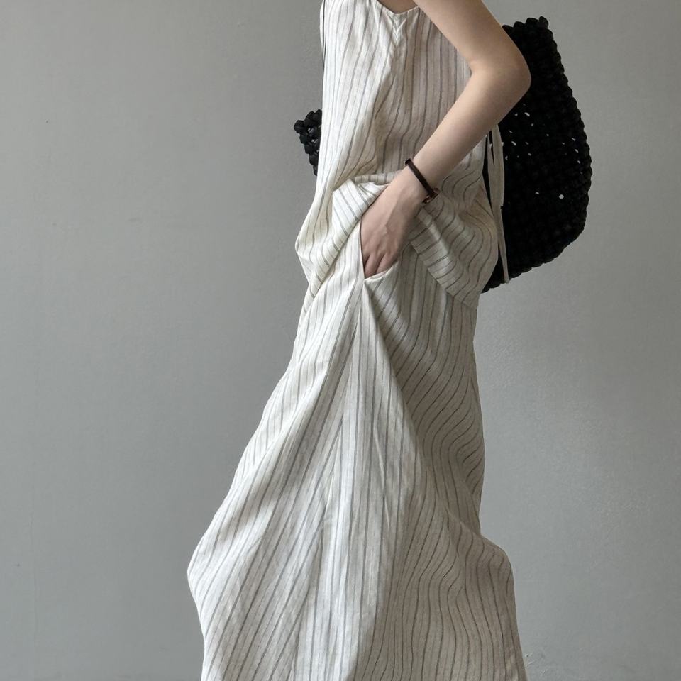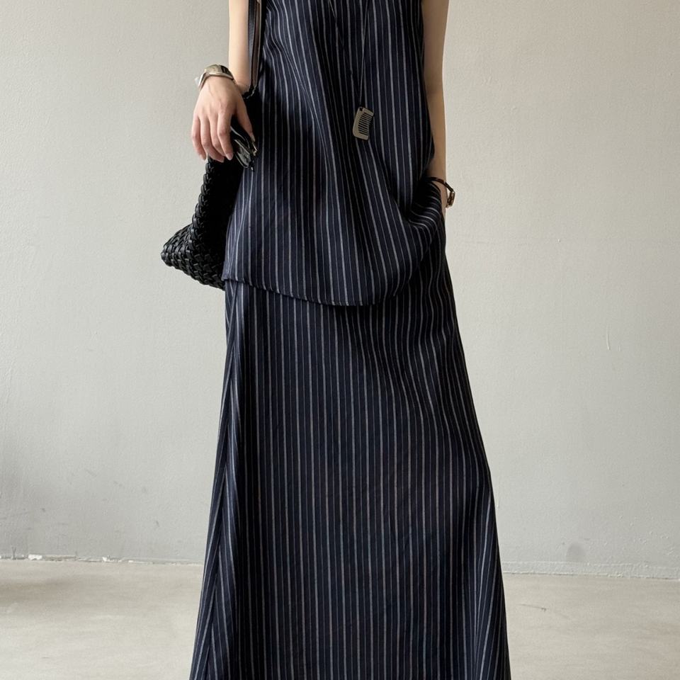 Ensemble en lin tendance 2025 pour femme : haut court rayé et jupe midi à volants (2 pièces)