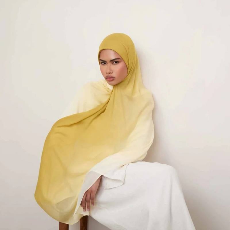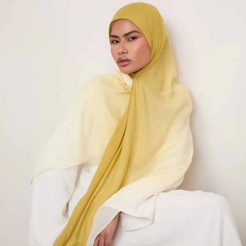 2025 Ombre Imprimer HIJAB Double Aiguille Rayonne Modal Écharpe Respirant Léger Doux Coton Châle pour Les Femmes Musulmanes