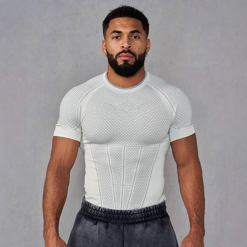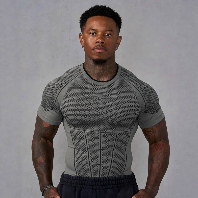 Nouveauté - Hauts de sport pour hommes de style américain, coupe ajustée, extensibles, à séchage rapide, manches courtes