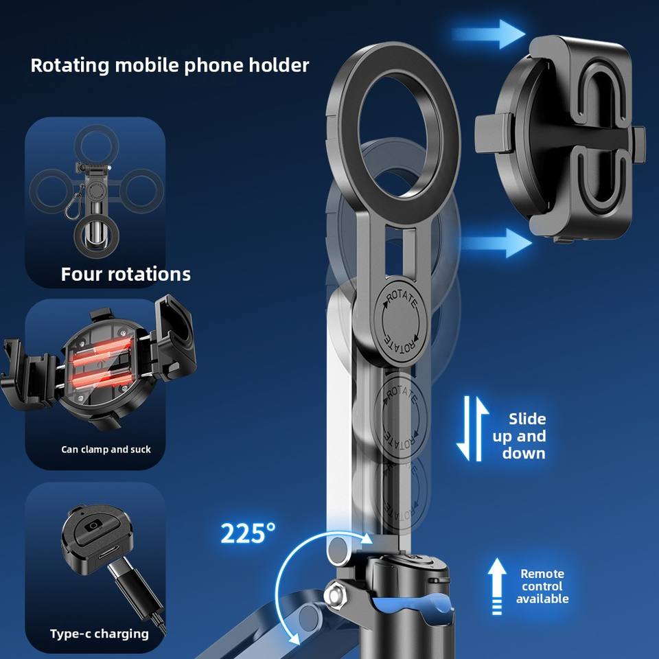 2025 P15Mini-C Portable Phone Stand & Remote Light Feature Magnetic Selfie Stick Tripod for Android New Mini Selfie Stick Tripod