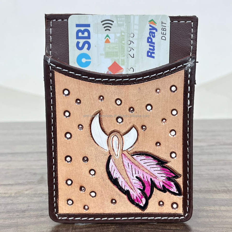 Type:Hand Tooled Cow Leather Credit Card Holder Wallet