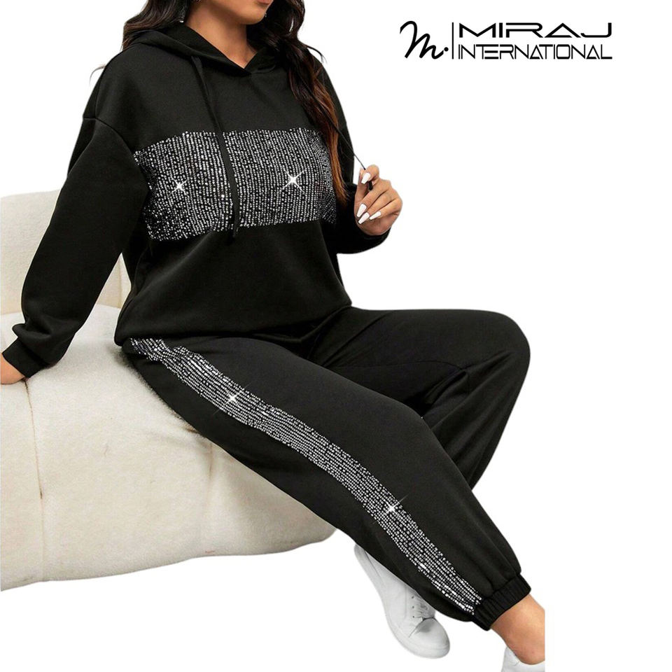 2025 grande taille 2 pièces rayé Sequin panneau latéral cordon pantalon décontracté vêtements de détente strass survêtements