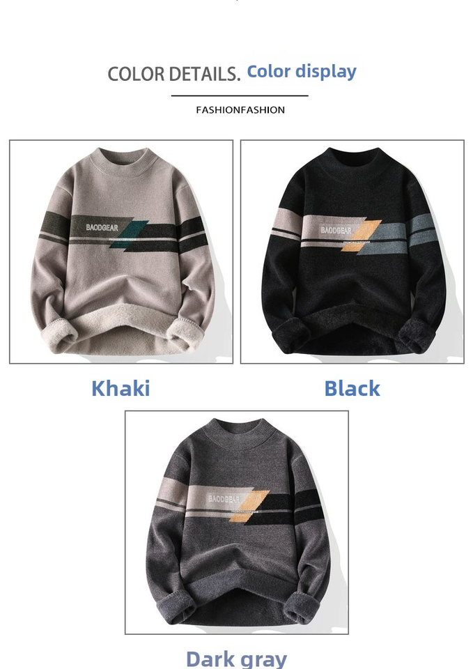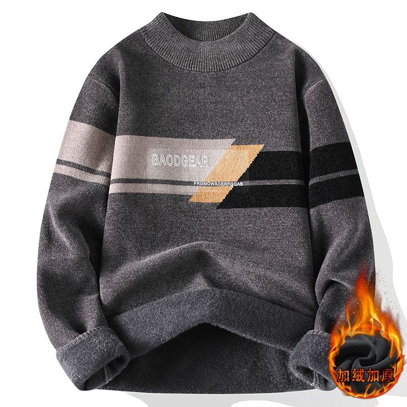 Pull en chenille pour homme grande taille 2025, haut thermique surdimensionné d'hiver, tricot lourd, logo jacquard, col pour hommes corpulents