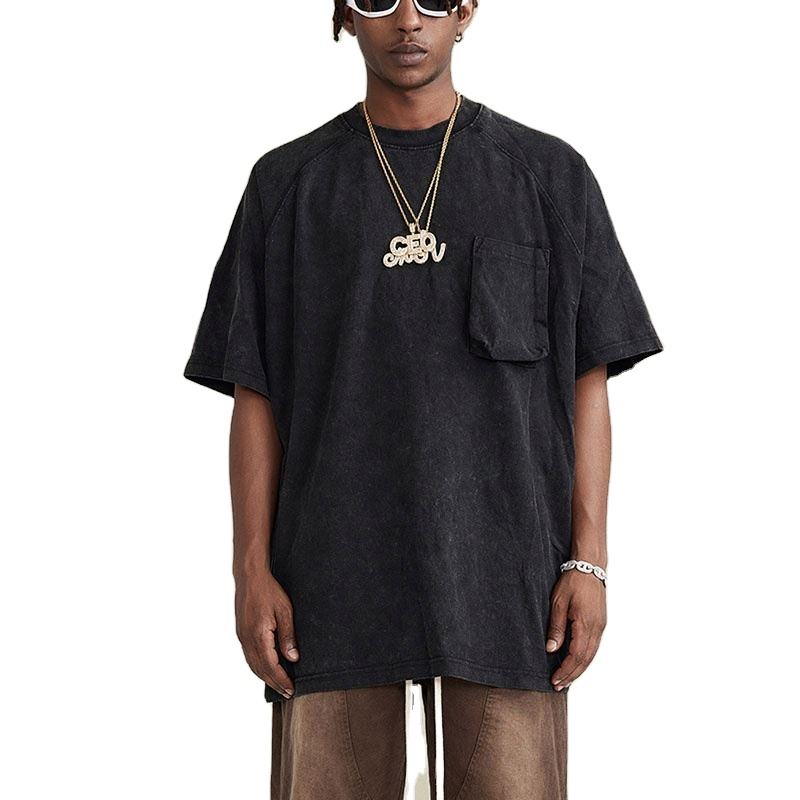2025 grande taille hommes tricoté T-Shirts personnalisé poids lourd surdimensionné plaine T-Shirt poche 2025 grande taille hommes tricoté T-Shirts