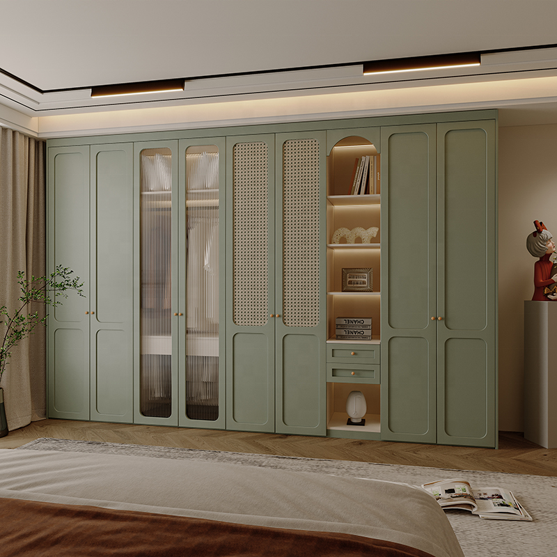 Armoire autoportante moderne en rotin 2025 avec portes plates pour chambre à coucher – Modèle populaire