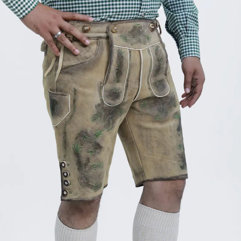2025 Premium Custom Men's Lederhosen Shorts 100% Cotton Solid German Bavarian Oktoberfest Outfit for Bulk Orders Private Label