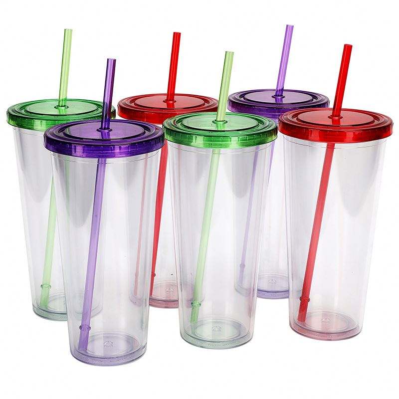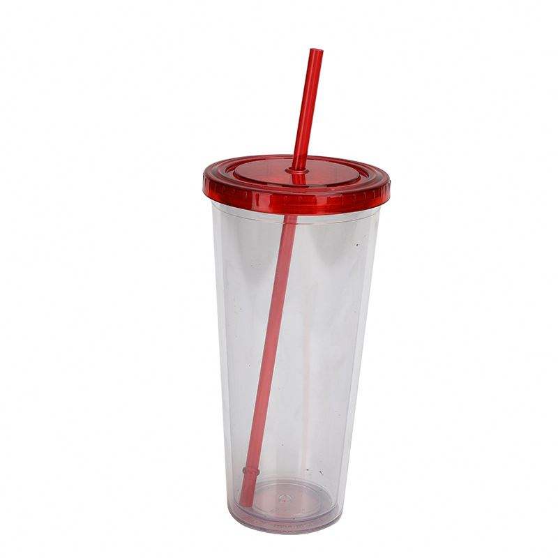Nom de l'article:Gobelet en plastique avec couvercle en paille