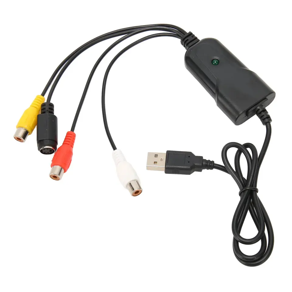 Adaptateur vidéo audio 2025 RCA vers USB Dispositif de carte de capture vidéo Plug and Play 2.6ft VHS DV VCR Hi8 DVD vers numérique pour OS X pour PC