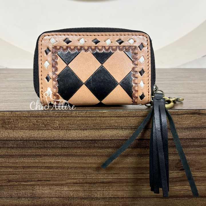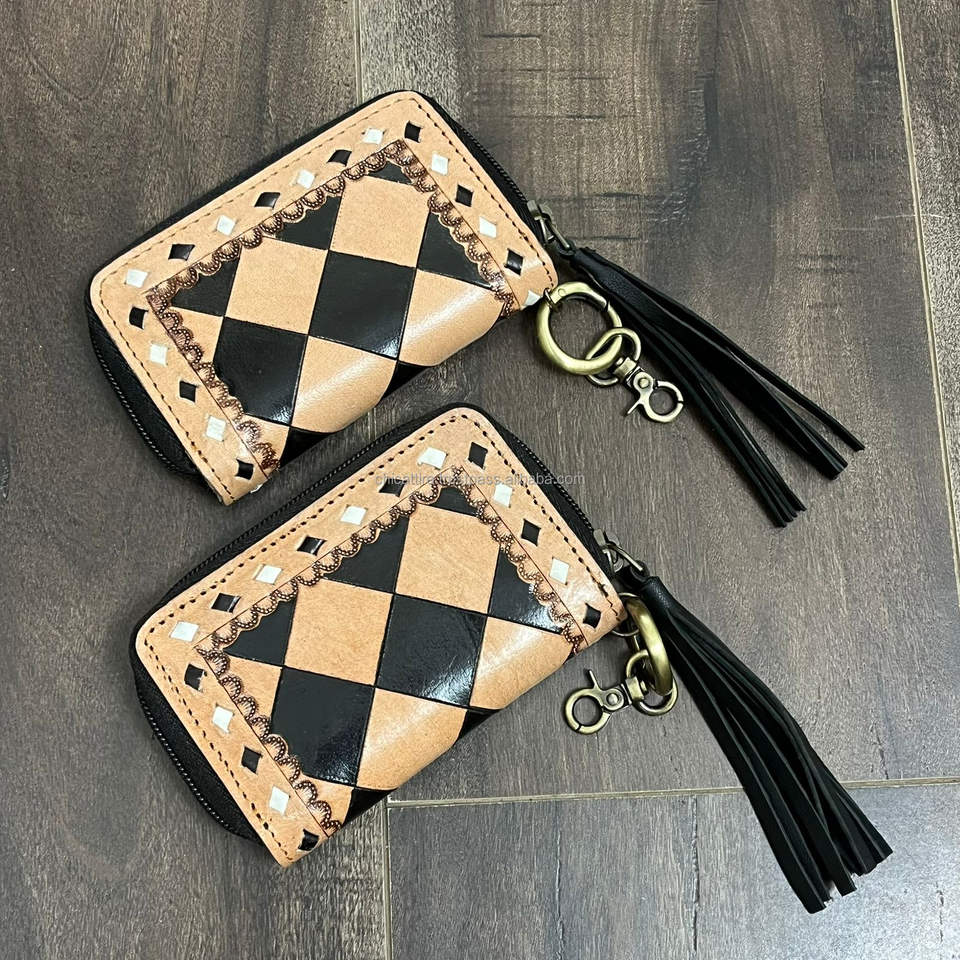 Nom du produit:Porte-monnaie en cuir véritable design damier