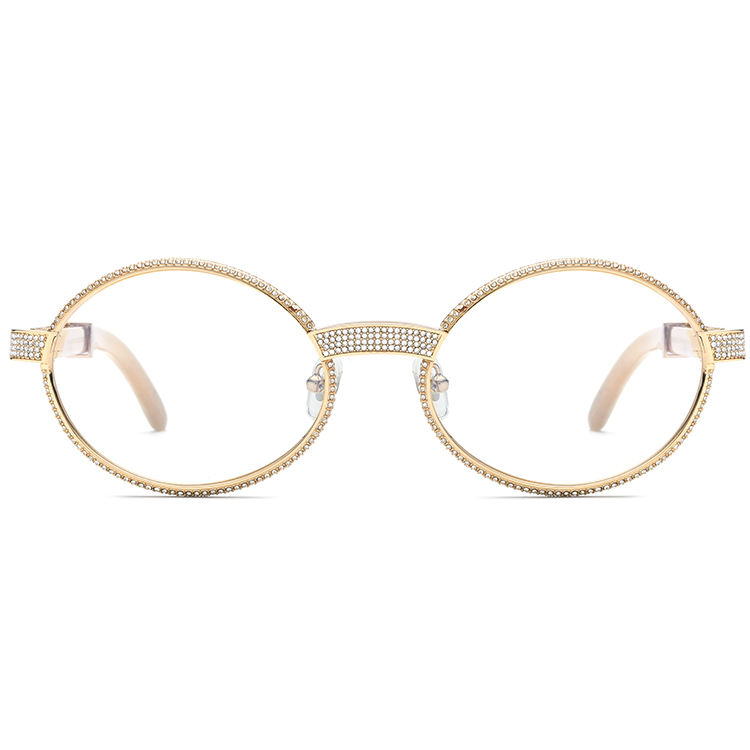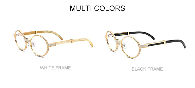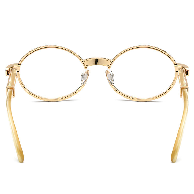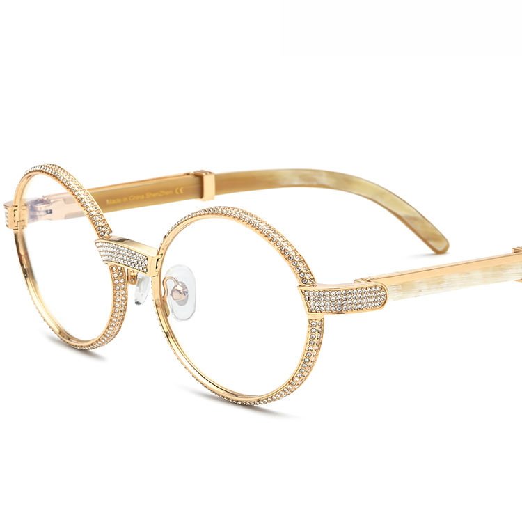 Lunettes de vue rétro 2025, monture ronde en métal, diamant, branches en corne de buffle