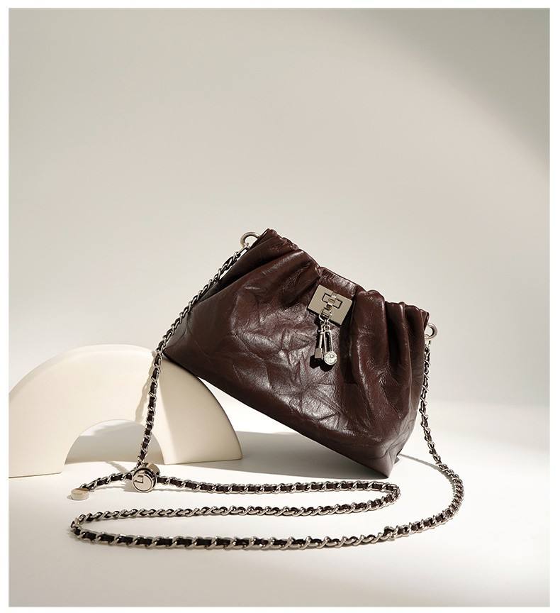 Sac messager plissé en cuir véritable haut de gamme style rétro 2025 – Élégance vintage pour femme, porté épaule ou croisé