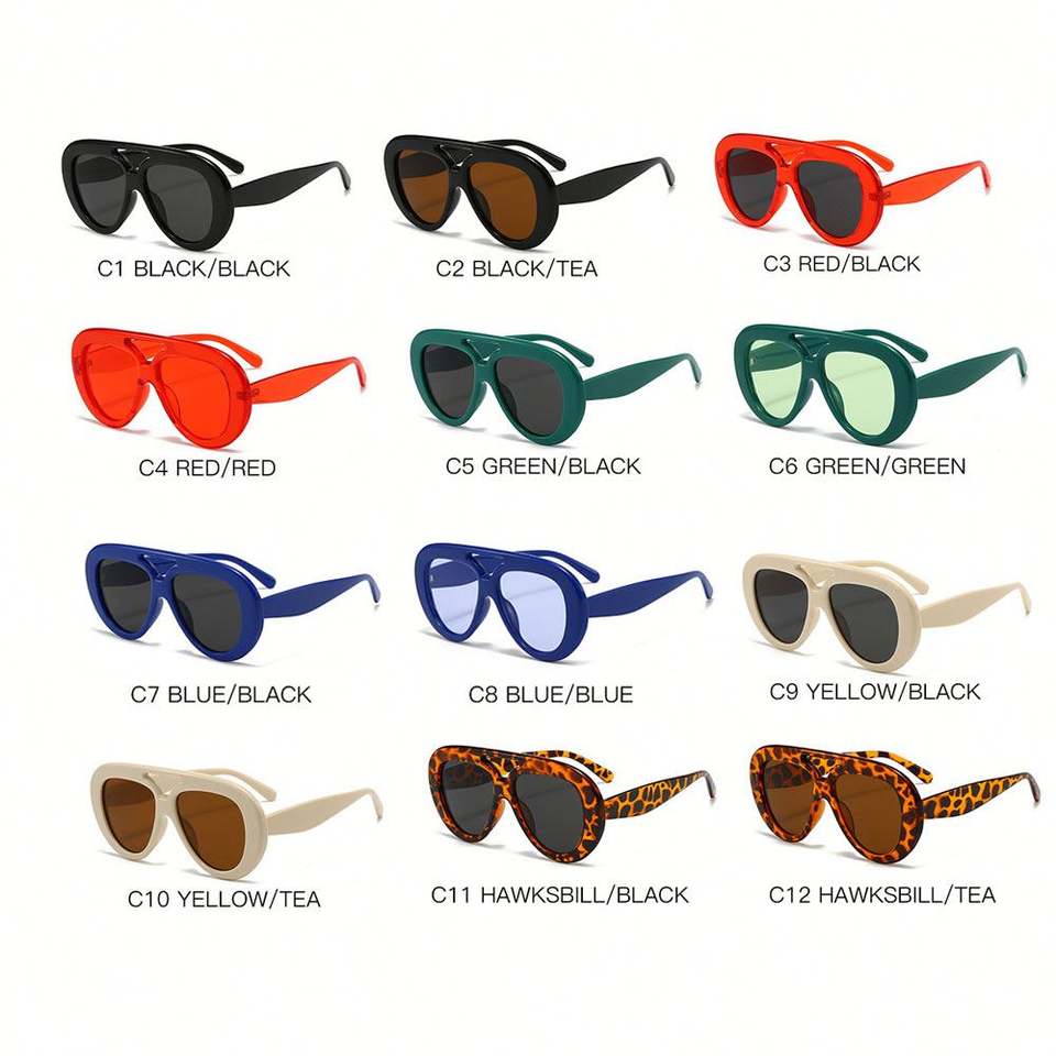 Lunettes de soleil rétro 2025 pour hommes et femmes, monture PC large, rondes, UV400, colorées, double pont, style pilote