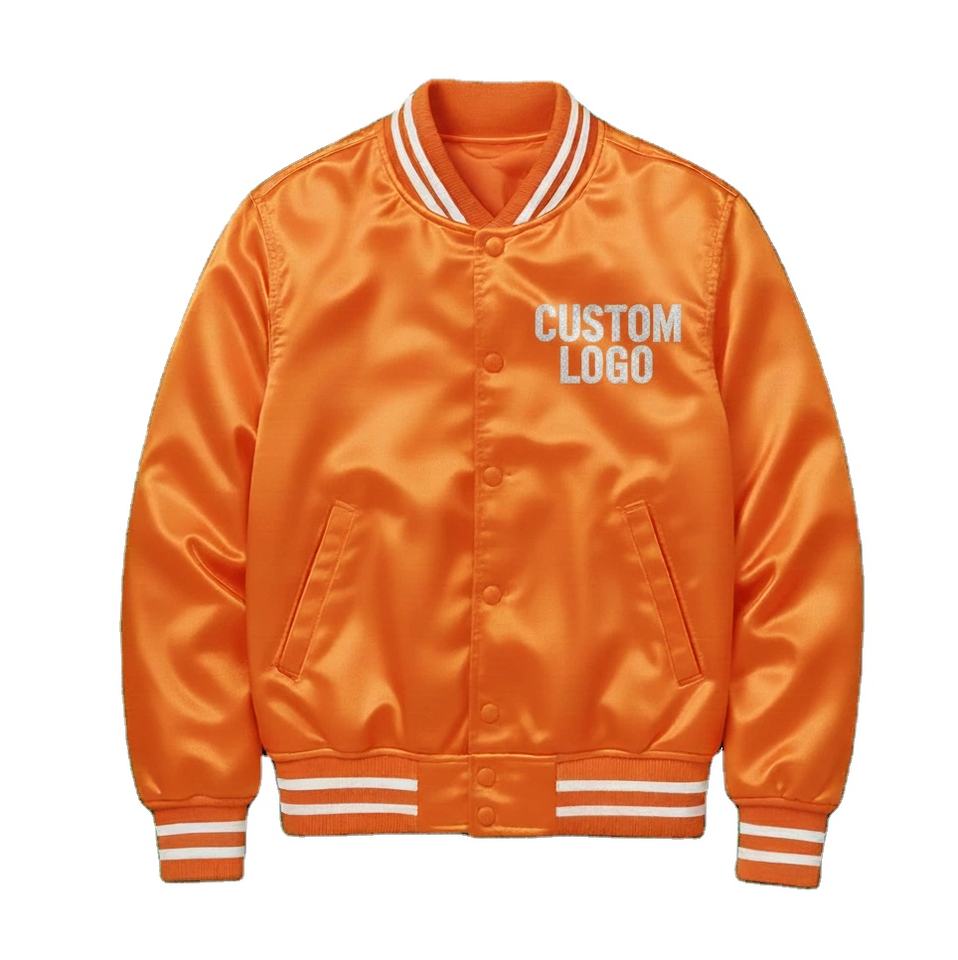Veste universitaire personnalisée en nylon satiné avec boutons-pression, style baseball, veste bomber, veste universitaire unisexe personnalisée en gros pour hommes