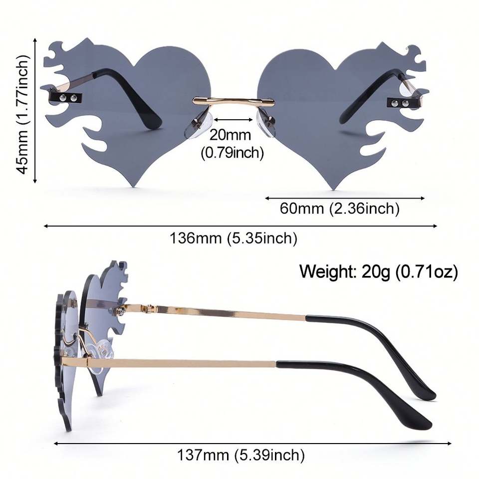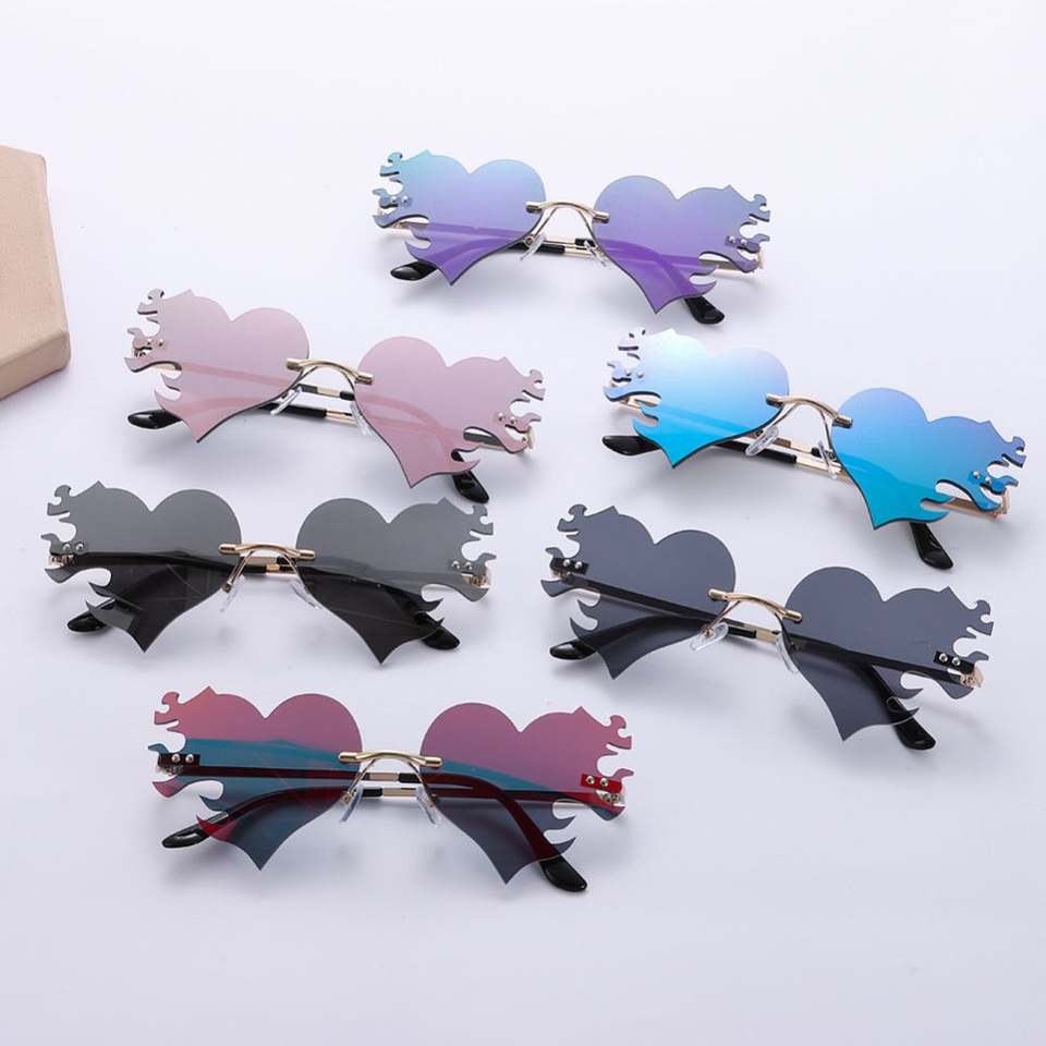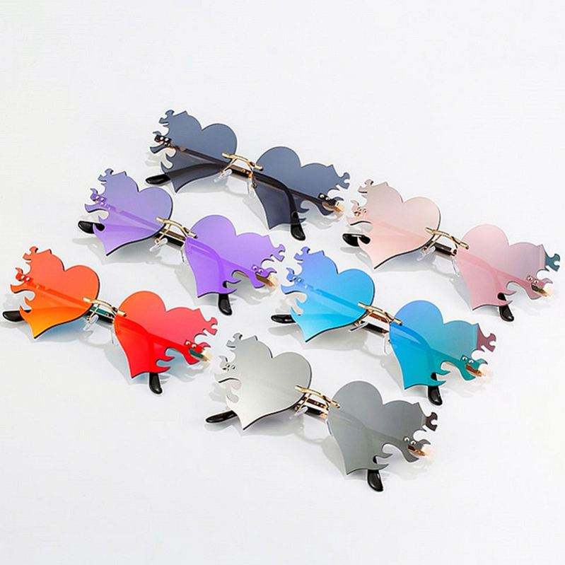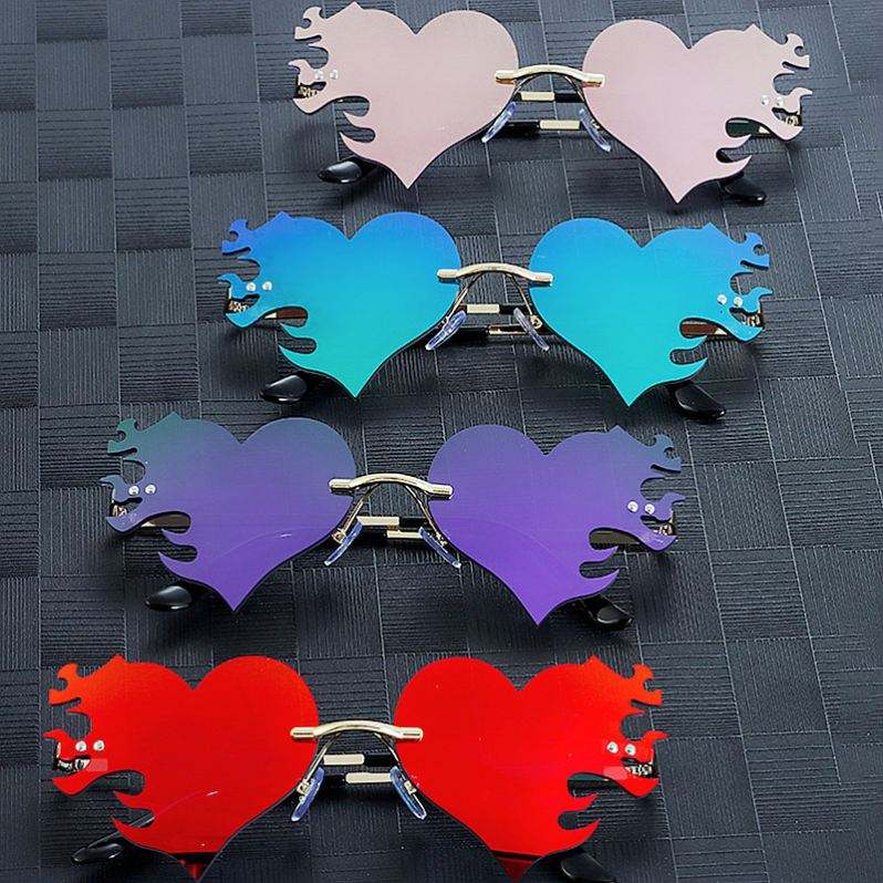 Lunettes de soleil sans monture 2025 en forme de cœur flamme personnalisées UV400 Oculos De Sol Feminino Lunettes de soleil en forme de cœur flamme pour femmes