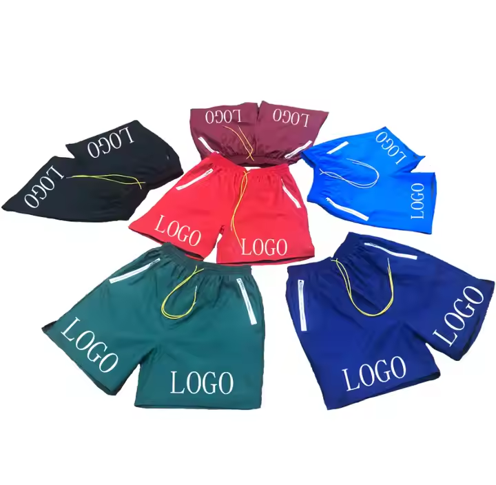 2025 Ruimai Short de sport d'été en maille, couleur unie, personnalisable par sublimation, avec double poches, taille élastique, style streetwear, 100% Coton