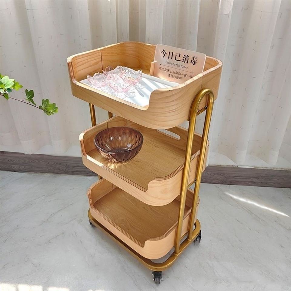 Chariot de salon moderne à trois niveaux en bois massif, design 2025, multifonctionnel, mobile, pour salon de coiffure, mobilier pour salons de beauté