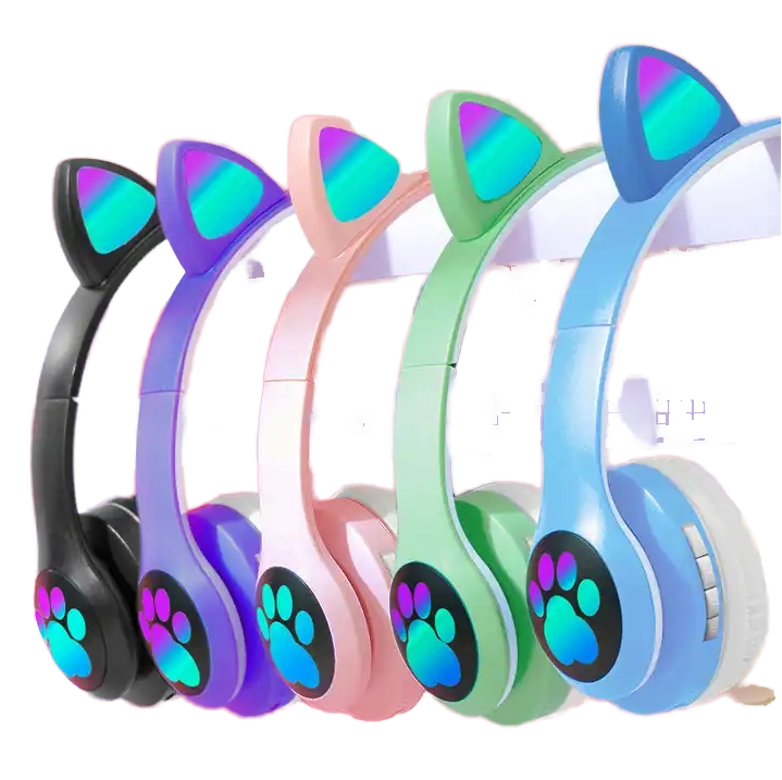 Nouveau Casque sans fil Bluetooth pliable 2026 SHOPIFY avec oreilles de chat LED lumineuses pour filles, prise jack 3,5 mm, lecteur de carte TF et micro intégré