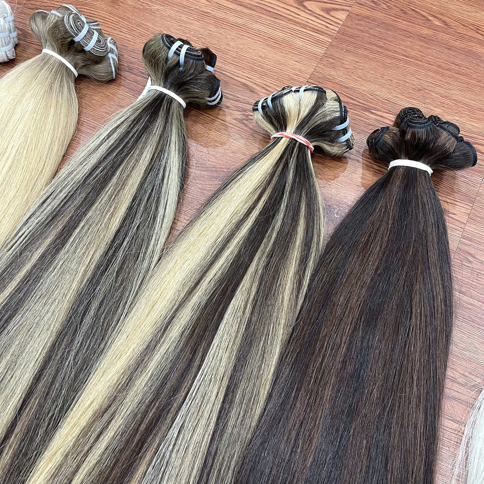 Extensions de cheveux humains colorées à cuticules alignées, styles de cheveux lisses, vente en gros au Vietnam, tissage de cheveux, vente 2025