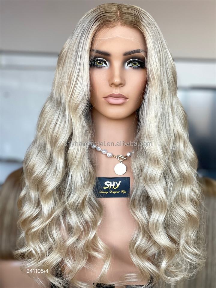 2025 Shy New Design HD 13*5 Patchwork Lace Front Raw Virgin Blonde Ombre Grey Ash with Root Luxury Deep Wave Wigs