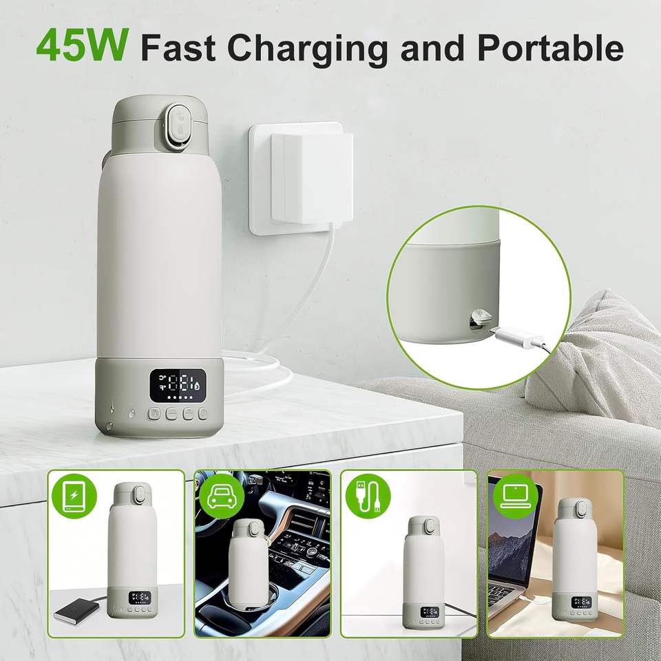 Bouilloire électrique portable intelligente 2025, mini, sans fil, chauffe-eau USB rechargeable, chauffe-lait pour bébé, lait maternel, utilisation en extérieur