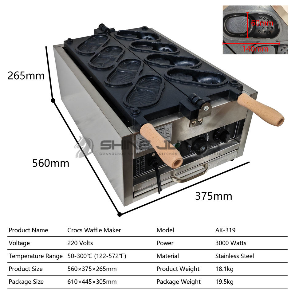 2025 Snack Machine électrique 4 pièces pantoufles électriques Machine à pain commerciale Crocs gaufrier Machine