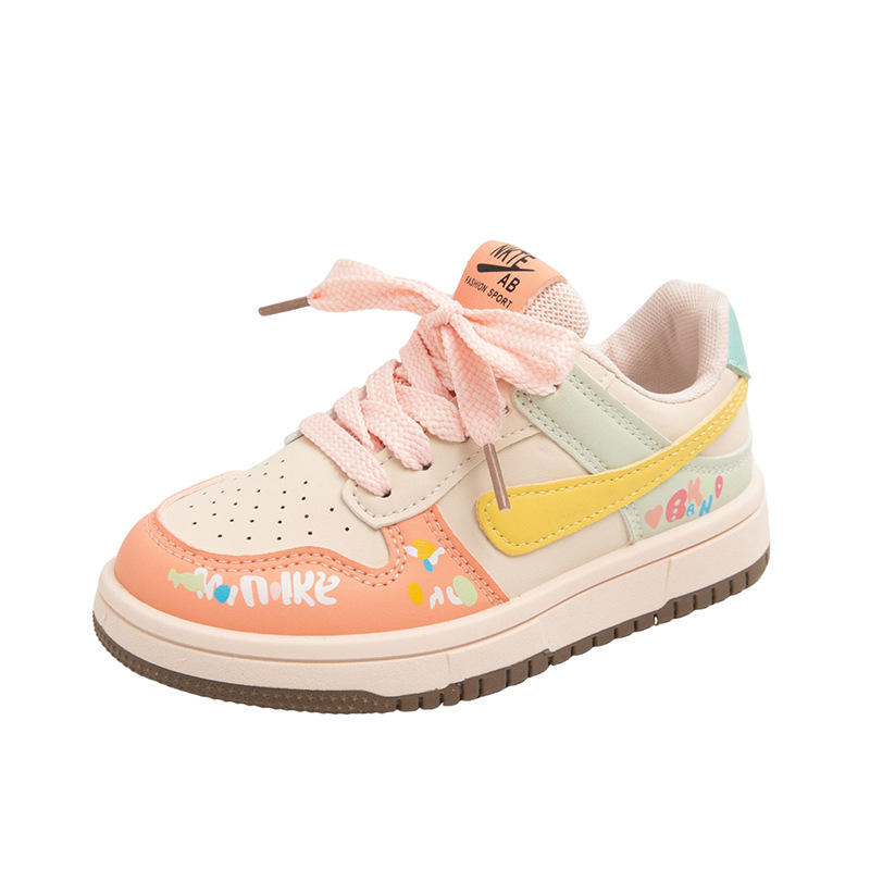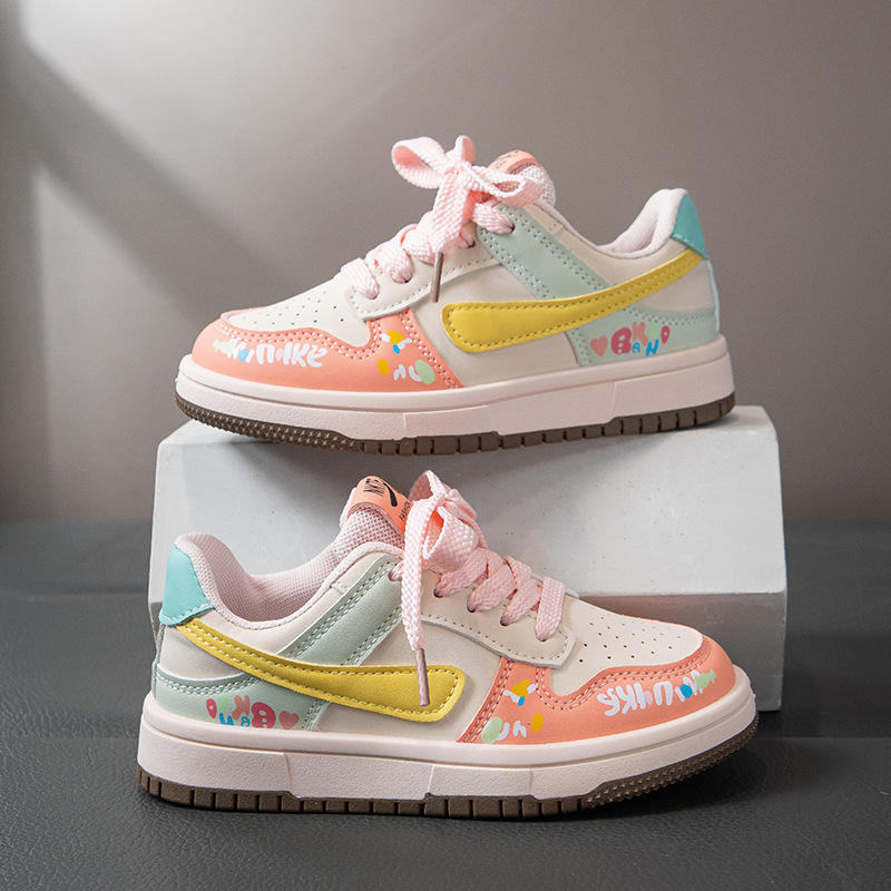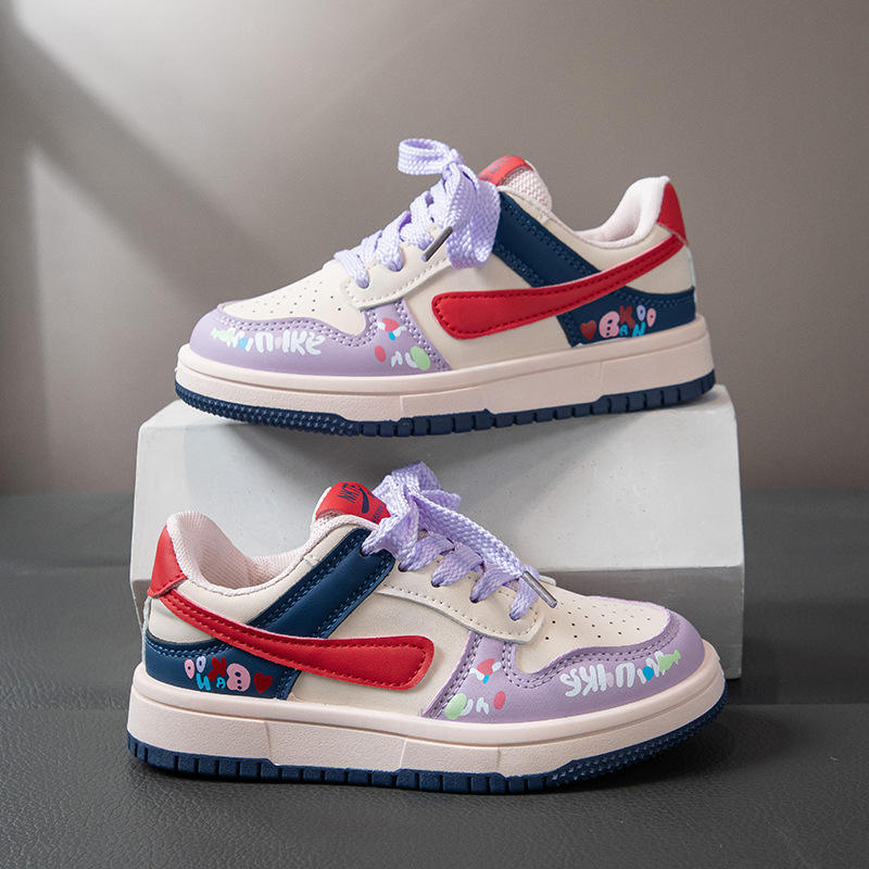 Chaussures de sport pour enfants printemps-automne 2025, baskets décontractées pour garçons, chaussures de course tendance pour filles, cuir artificiel violet/rose