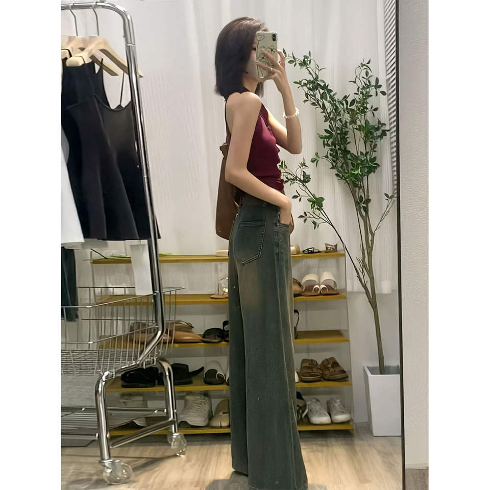 2025 Spring Autumn High Waist 2XL Women's Retro American Jeans Versatile Mopping Pants-Loose Slim Straight Long Trousers Length