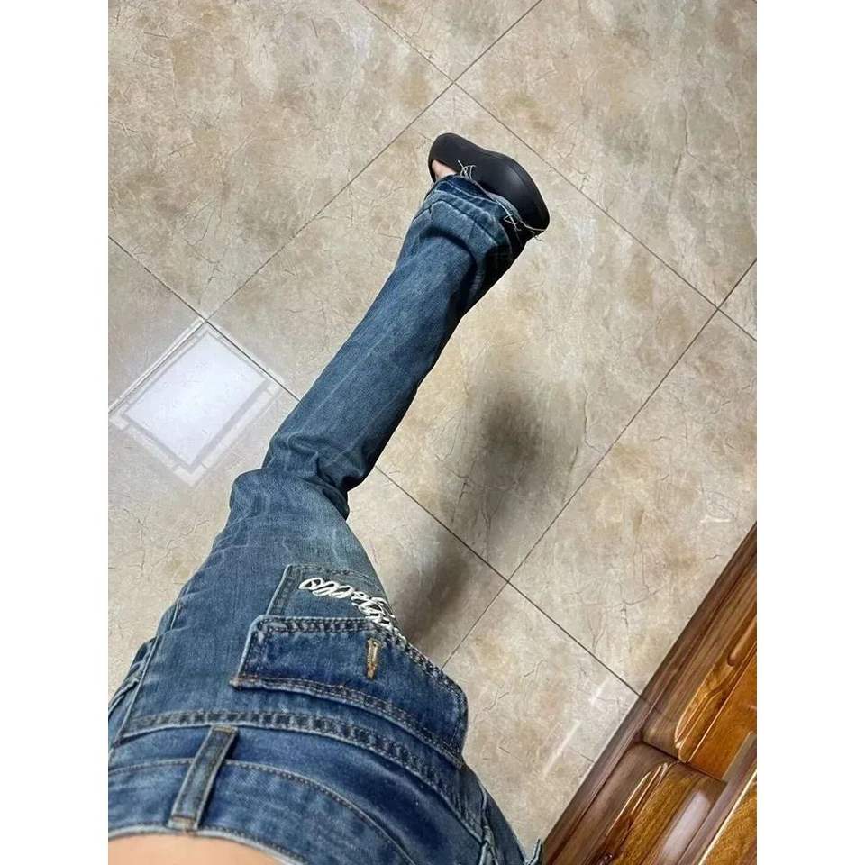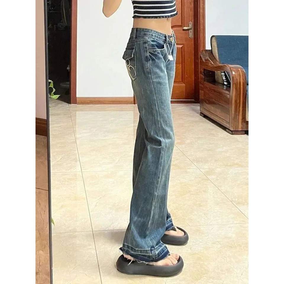 2025 printemps automne nouveau taille haute minceur évasé Denim pantalon pour femmes mince poche conception jambe droite pantalon de vadrouille